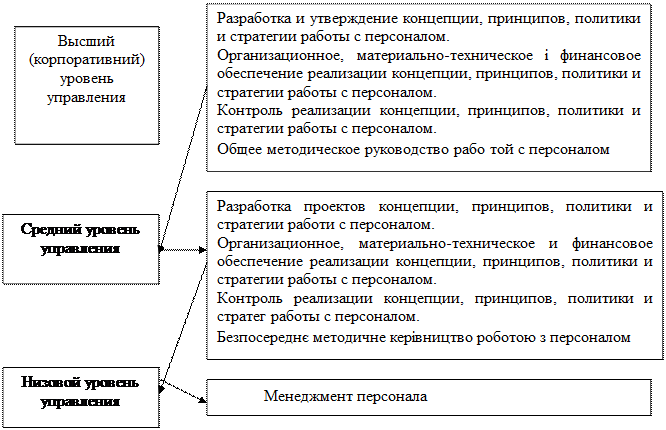 В иерархической организации структура системы управления персоналом формируется согласно ее построению, а содержание функционирования, направленность и результативность отдельных звеньев общей службы управления персоналом отвечает положению определенного уровня в общей иерархии организации (рис. 1.2).