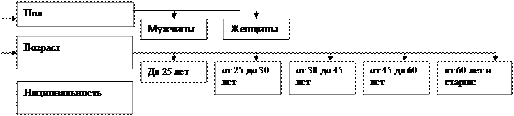 Социальная структура персонала предприятия характеризует его как совокупность групп, которые классифицируются по: содержанию труда, уровню образования и квалификации, профессиональному составу, стажу работы, полу, возрасту, национальности, принадлежностью к общественным организациям и партиям, семейному положению, направлению мотивации, уровню жизни и статусу занятости (рис. 2.3).