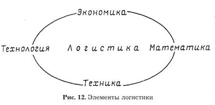 Как следует из данного примера, логистический подход предполагает необходимость решения задач в области техники, технологии, экономики и математики. В связи, с этим логистику можно представить единством следующих элементов (рис. 12):
