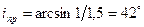 , поэтому предельный угол отражения на границе стекло-воздух равен