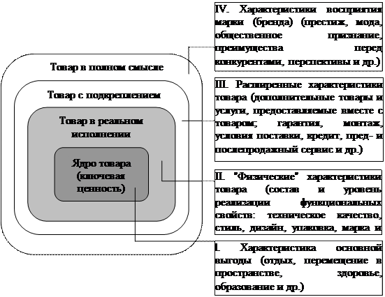 1. Многоуровневая интегральная модель товара. Данная модель рассматривает товар как многослойную иерархию его характеристик, в центре которой лежит базовая потребность.