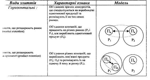Можно привести следующие примеры горизонтально интегрированных концернов в Украине: Roshen, Kraft Foods, ABK (кондитерская промышленность); САН Интербрю, «Оболонь», ВВН, «Сармат» (пивобезалкогольная отрасль) и др.