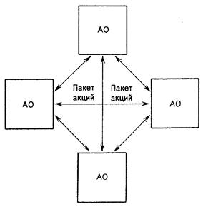 4. ФПГ без образования центральной компании, что предполагает взаимодействие участников объединения на основе перекрестного владения акциями.