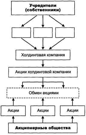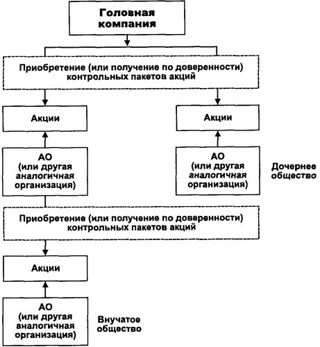 Приведенные схемы отражают, как уже говорилось, структуру холдингов с позиций размещения акций, но далеко не исчерпывают многообразие холдинговых структур.