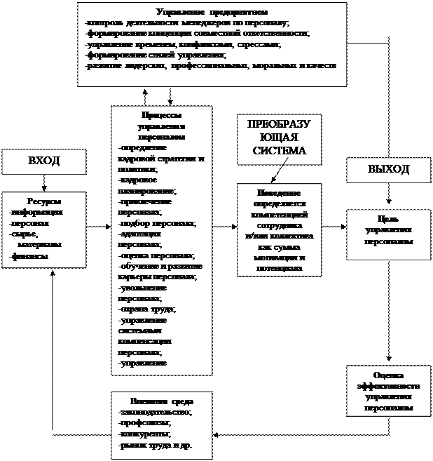 Система управления персоналом формируется по принципам системного подхода (понятия «система» и «подсистема»), где организация рассматривается как социальная система (рис. 6) и включающая в себя: «вход», «преобразующую систему» и «выход».