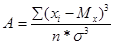 При левостронней асимметрии ее показатель является положительным и в распределении преобладают более низкие значения признака. При правостронней – показатель положительный и преобладают более высокие значения. У всех симметричных распеделений (в том числе и у нормального распределения) величина асимметрии равна нулю. Формула показателя асимметрии является следующей: