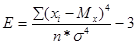Для обработки данных понадобятся следующие последовательные шаги: вычисление Mx, s, А, Е по уже известным формулам. Необходимо также определение ошибок репрезентативности асимметрии и эксцесса: