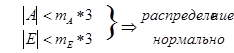 Распределение считается достоверно нормальным если абсолютная величина показателей асимметрии и эксцесса меньше их ошибок репрезентативности в 3 и более раз.