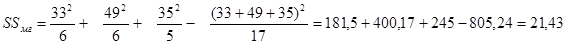| Sx1=33 | Sx12=199 | Sx2=49 | Sx22=411 | Sx3=35 | Sx32=255 | Sxобщ=117 |