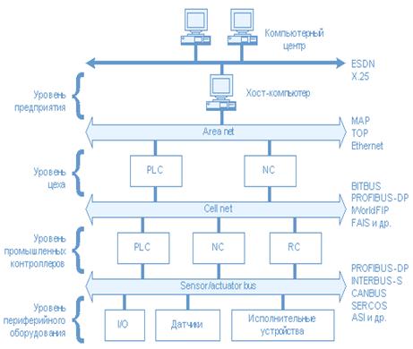параметризация контроллеров нижнего уровня, загрузка технологических программ, «ручная» выдача команд на исполнительные механизмы. Информационный кадр на этом уровне содержит, как правило, несколько десятков байтов, а допустимые временные задержки могут составлять от 100 до 1000 миллисекунд в зависимости от режима работы. С нижнего уровня собираются текущие показатели контролируемых устройств и механизмов.
