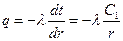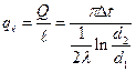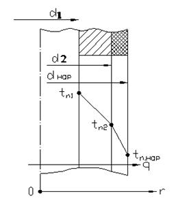 Здесь, в отличие от плоской стенки, тепловой поток зависит от радиуса