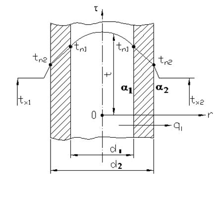 Рис. 1.11. Теплопередача через однослойную цилиндрическую стенку