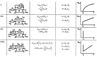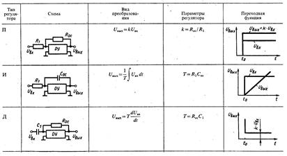 Схемы и характеристики других регуляторов ПИ-, ПД-, ПИД- осуществляют комплексное преобразование входных сигналов.