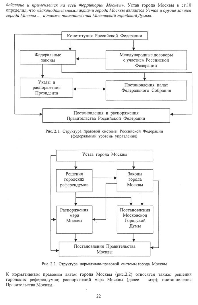 Конституцией (ст.5) установлена федеративная организация российского государства. Российская Федерация состоит из субъектов федерации, перечень которых приведен в ст.65 Конституции. Одним из субъектов федерации является город федерального значения Москва, законодательство которого можно использовать для примера. Статьей 76 Конституции установлено право субъектов федерации издавать собственные законы и иные нормативные акты.
