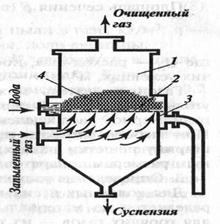 | Абсорбционные | поглощение загрязнений растворителем (водой) с образованием раствора | Насадочные башни; скрубберы; барботажно-пенные аппараты и др. |