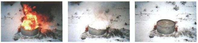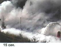 Рис.3. Испытания автоматической системы пожаротушения с модулями ОПАН-50, при тушении резервуара нефтепродуктов объемом 15м3 и поверхностью горения 8м2