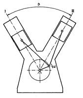 Итак, четырехтактный поршневой двигатель состоит из цилиндра 5 и картера 6, который снизу закрыт поддоном 9 (рис.1,а). Внутри цилиндра перемещается поршень 4 с компрессионными (уплотнительными) кольцами 2, имеющий форму стакана с днищем в верхней части. Поршень через поршневой палец 3 и шатун 14 связан с коленчатым валом 8, который вращается в коренных подшипниках, расположенных в картере. Коленчатый вал состоит из коренных шеек 13, щек 10 и шатунной шейки 11. Цилиндр, поршень, шатун и коленчатый вал составляют так называемый кривошипно-шатунный механизм (см. рис.1,б). Сверху цилиндр 5 накрыт головкой 1 с клапанами 15 и 17, открытие и закрытие которых строго согласовано с вращением коленчатого вала, а, следовательно, и с перемещением поршня.
