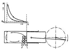 Для 2-х тактных ДВС характерно то, что весь рабочий цикл совершается при давлении выше атмосферного и поэтому индикаторная диаграмма располагается над линией атмосферного давления (Po).