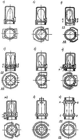 К О Н Т У Р Н А Я. По взаимному расположению окон контурные схемы делятся на: поперечные - продувочные окна расположены напротив выпускных;
