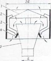 1-колпак; 2обичайка, 3 - лапки; 4-кончс, 5 - диффузор