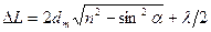 Рассмотрим ход одного из лучей. Поскольку угол клина мал, можно считать, что угол падения везде ноль. Когерентными являются лучи, отразившиеся в точках 1 и 2. В точке 1 они накладываются. Найдем радиус