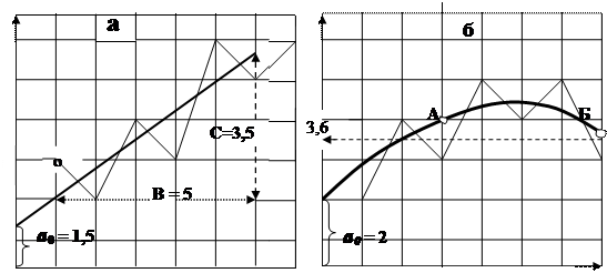 Этот метод пригоден тогда, когда искомая зависимость является прямой линией. Тогда эта линия отвечает отрезку полинома (4.6) с двумя членами уравнения в правой части у = а0 + а1х, причем числа а0 и а1 имеют простой геометрический смысл: а0 есть величина отрезка отсекаемого прямой на оси у,а1 тангенс угла наклона прямой к оси х (рис. 4.6а).