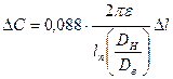 В плоском емкостном преобразователе изменение емкости определяется формулой: