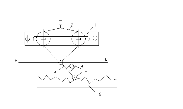 При планиметрировании диаграммы линейным планиметром, его направляющую 1 укрепляют на столе. Приблизительно параллельно ей прикалывают ленту 6 с диаграммой.рамка 2 планиметра перемещается вдоль направляющей. При этом ось 0 обводного рычага 3 движется по линии a b параллельно направляющей. Линия a b наз. нулевой линией. Если обводной штифт 5 планиметра вести по линии a b, то ролик считающего механизма 4 вращаться не будет и показание планиметра будет оставаться нулевым. При движении штифта по всем другим линиям счетный механизм будет вращаться в сторону положительных или отрицательных показаний. При начале планиметрирования иглой накалывают начальную точку и на эту точку устанавливают обводной штифт 5. затем диск и ролик считающего механизма 4 устанавливают на нуль и обводят диаграмму обводным штифтом 5 против часовой стрелки. При возвращении штифта в начальную точку показания считающего механизма умножение на масштаб планиметра дает площадь диаграммы.