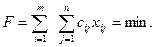 4) общая сумма затрат на перевозку груза должна быть минимальной: