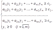 Здесь z — общая оценка ресурсов. Каждое j-е ограничение из системы представляет собой неравенство, левая часть которого равна оценке всех ресурсов, расходуемых на производство единицы j-го вида продукции, а правая — стоимости единицы этой продукции.