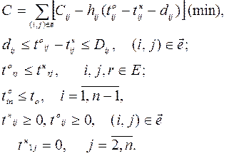 Увеличение продолжительности работы (i,j) по сравнению с минимальным сроком выполнения на (t°ij - tнij - dij) вызовет экономию средств на величину hij (t°ij -tнij - dij), a стоимость выполнения работы станет равна