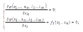 по всем независимым переменным xk(k=1,…n) и по всем множителям Лагранжа