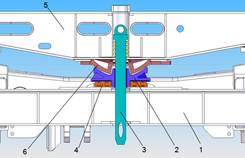 1 - центральная балка тележки 2 - подпятник 3 - шкворень 4 - амортизатор 5 - балка рамы шкворневая 6 – пятник