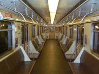 В пассажирском салоне окна расположены между раздвижными дверями и в торцевой стене; в кабине Рис. 3.7. Диваны и поручни машиниста - в торцевой и боковой стенах. Окна торцевых стен глухие. Боковые окна пассажирского салона оборудованы форточками с задвигающимися стеклами. Боковое окно в кабине машиниста опускное, с пружинным фиксатором. Для облегчения его перемещения по направляющим пазам в оконной пазухе имеется противовес.