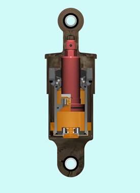 Происходит увеличение длины гидрогасителя. При этом поршень, перемещаясь по рабочему цилиндру вверх, заставляет давление жидкости в надпоршневой полости повыситься, и жидкость через клапан в поршне начинает перетекать с сопротивлением в подпоршневую полость. Но так как объем перетикающей жидкости слишком мал из-за массивного штока - жидкость не успевает наполнить подпоршневую полость, и это ведет к быстрому понижению давления в ней. В этот момент через клапан в рабочем цилиндре недостаток жидкости из дополнительной полости, частично освобождая ее, начинает перетекать в подпоршневую, ликвидируя этот недостаток.