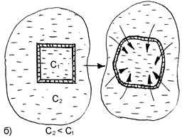 Рис. 21. Схема процесса диффузии для двух растворов разной концентрации