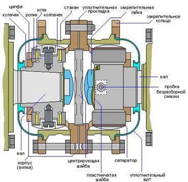 Закрепительные гайки имеют сферические окончания, а центрирующая шайба соответствующие сферические выемки. Именно этими сферами они и взаимодействуют между собой при перемещении карданной муфты. Именно этим перемещением определяется разбег.
