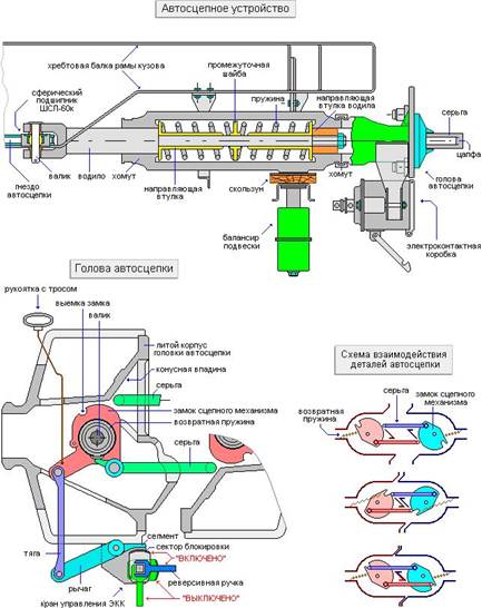 Составные элементы подвески автосцепки:
