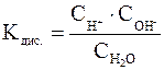 Следует подчеркнуть, что данная формула содержит равновесные концентрации молекул Н2О, ионов Н+ и ОН–, которые установились на момент наступления равновесия в реакции диссоциации Н2О.