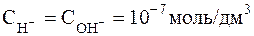 По величине электропроводности чистой воды можно вычислить концентрацию в ней ионов Н+ и ОН–. При 25оС она равна 10–7 моль/л.