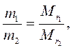 3. Отношение масс равных объемов различных газов равно отношению их молекулярных масс: