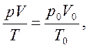 где р0, V0, Т0 – соответственно давление, объем, температура при н.у.; р, V, Т – те же параметры данного количества газообразного вещества при других условиях.
