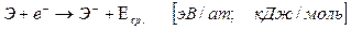 Энергия ионизации выражается в килоджоулях на моль (кДж/моль) или в электрон-вольтах на атом (эВ/ат).