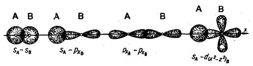 Химическая связь между атомами обусловливается перекрыванием электронных облаков. Если перекрывание происходит вдоль линии, соединяющей ядра атомов, то такая связь называется сигма-связью (σ-связь). Она может быть образована за счет двух s-электронов, s- и p-электронов, двух px-электронов, s и d электронов (например