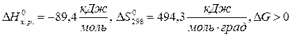 , то процесс невозможен как в стандартных, так и в иных условиях. По изменению энергии Гиббса от -41,8 до 41,8 кДж/моль нельзя сделать заключения о возможности протекания процесса в стандартных условиях, но вещества относятся к пожароопасным, хотя эти свойства у них появляются в условиях, отличных от стандартных (например, во время пожара).