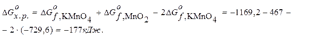 -88,5 кДж/моль < - 41,8 кДж/моль – процесс разложения KMnO4 идет самопроизвольно.