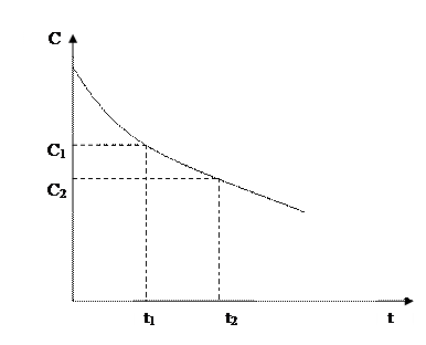Рис. 5.2. Изменение концентрации реагирующих веществ во времени.
