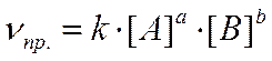 где [А], [В] – молярные концентрации реагирующих веществ А и В; k – константа скорости химической реакции (данной).