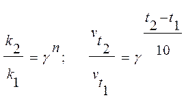 - температурный коэффициент скорости реакции, равный примерно 2÷4.