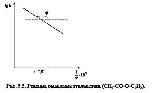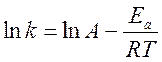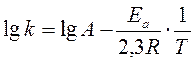 дает уравнение прямой линии. Знание констант скорости при нескольких температурах позволяет определить энергию активации данной реакции: